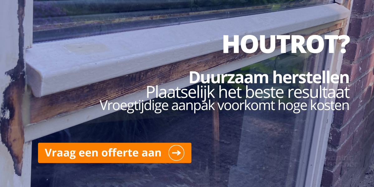 Stapsgewijs in meerdere momenten kan houtrot hersteld worden en niet in één keer met simpele voordelige plamuur of houtvuller. Dit maakt het enkel en alleen nog erger na verloop van tijd.