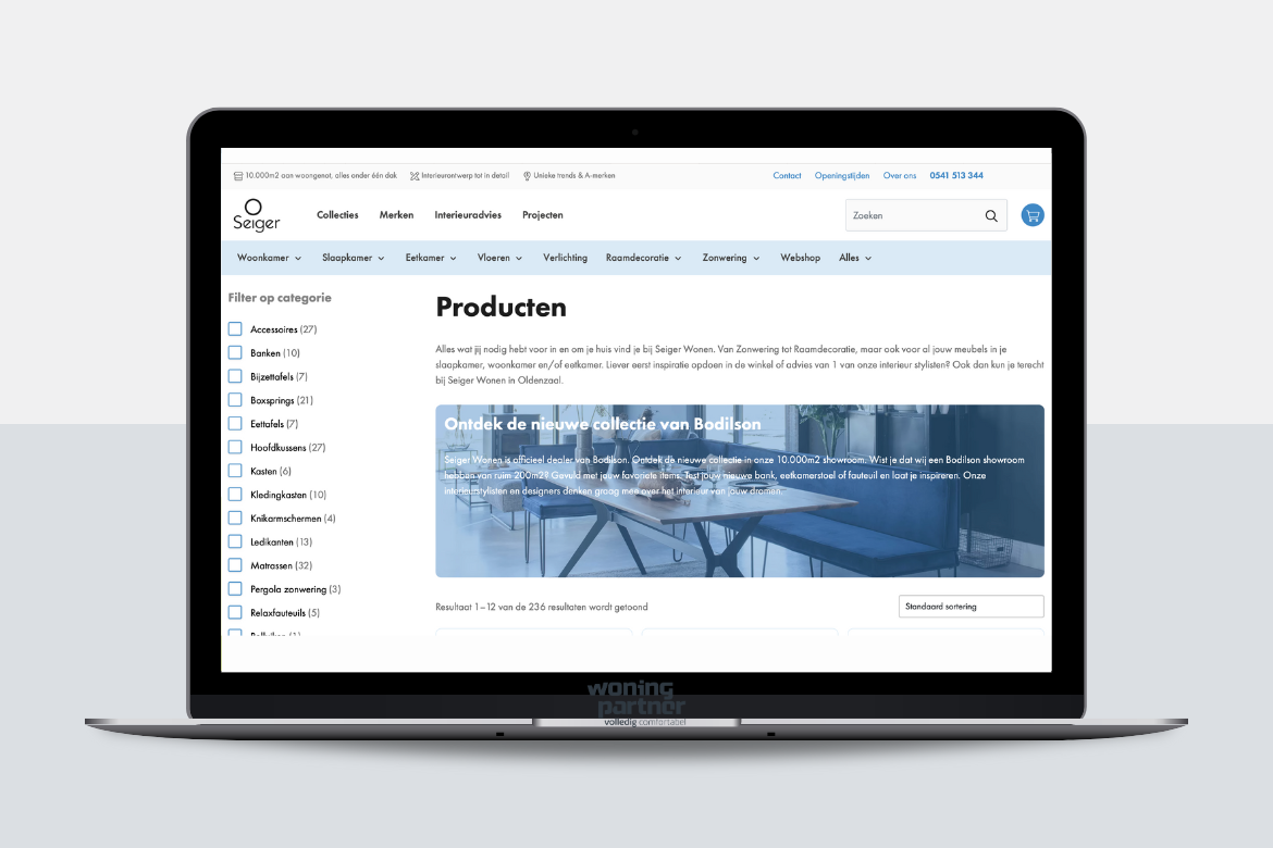 Seiger is al sinds 1957 de woonspecialist in Oldenzaal. Al drie generaties lang laat de familie Seiger jouw woonwensen uitkomen. Wij willen er compleet voor je zijn. Voor je slaapkamer, woonkamer en eetkamer maar ook voor raamdecoratie, zonwering, vloeren en outdoor living kan je bij Seiger terecht. Wij hebben alles voor je onder één dak én tekenen jouw wensen uit in 3D.