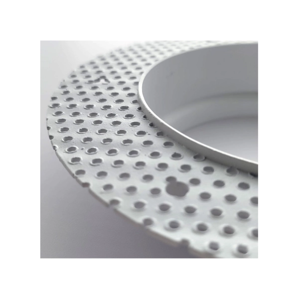 Dit inbouwarmatuur is ervoor gemaakt om inbouwspots in een gestuct plafond te verwerken. De inbouwspots met een buitenmaat van Ø85mm passen in dit frame. Tijdens het stucen kan dit frame in het plafond verwerkt worden door de stucadoor.