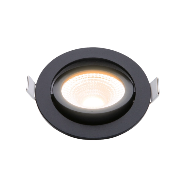 Deze zwarte ronde led inbouwspot is spatwaterdicht (IP54, geschikt voor badkamer) en een kleine inbouwdiepte van slechts 23mm. Uniek is de uitstekende dimbaarheid en het eenvoudige 2-draads doorlussen dankzij de compacte lasdoos met dubbele klemconnector (2x fase- en 2x nuldraad). Bijzonder is de lichtkleur ‘dim to warm’. Hiermee wordt de lichtkleur ‘warmer’ naarmate u dimt, namelijk van 3000K-2000K.