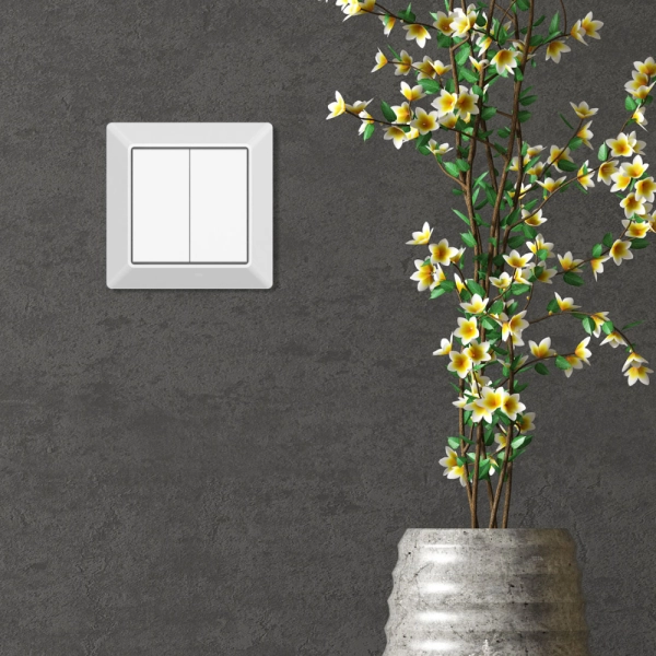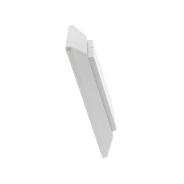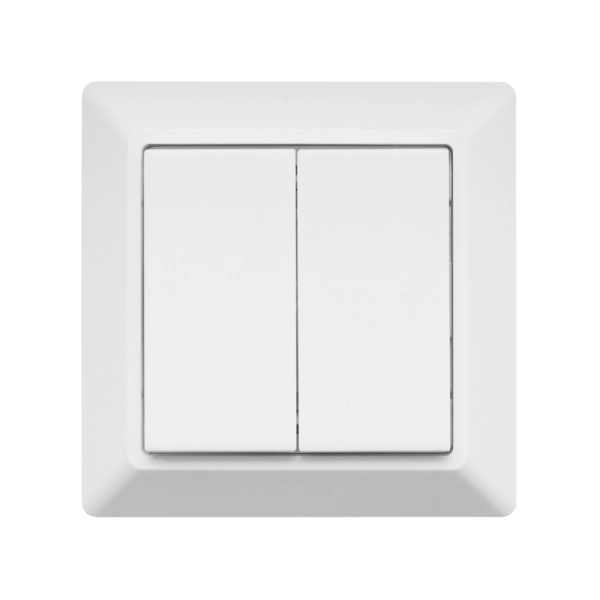 Deze draadloze slimme schakelaar is in de kleur wit en naast het eigen inbouwraampje ook te gebruiken in een GIRA 55 systeem.