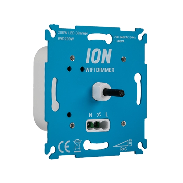 De ION Industries LED WiFi dimmer 90.500.010 maakt het dimmen van verlichting slimmer en eenvoudiger. Deze slimme dimmer combineert draadloze bediening via app en spraak met de vertrouwde draaifunctie aan de wand. De dimmer werkt zonder nuldraad en is daardoor perfect te gebruiken bij renovatieprojecten of bij vervanging van bestaande schakelaars in woningen.
